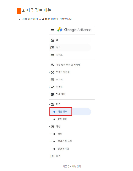 구글 애드센스로 접속하여 지급을 누르고 결제정보를 클릭합니다.