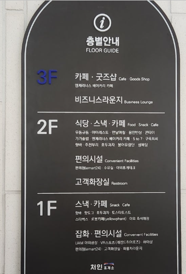 시설은 2층에 대부분 있지만, 공원이나 스타벅스는 [세종]방향쪽에 있어요.