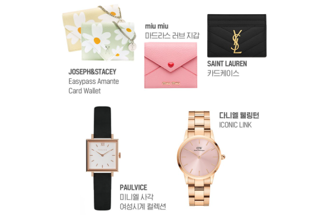 교통카드나 체크카드를 주로 쓰는 20대들을 위한 슬림 하고 수납력이 좋은 카드 지갑, 그리고 2% 부족한 데일리룩을 완벽하게 채워줄 시계와 스카프까지!
