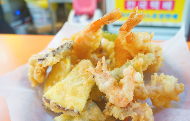 다음날 점심으로는 대포항 튀김골목에서 다양한 해산물 튀김을 맛봤어요. 가격도 저렴한데 양이 푸짐해서 대만족이었습니다. 신선한 해산물을 이렇게 실컷 먹을 수 있다니, 양양 여행의 큰 즐거움이었어요.