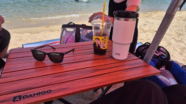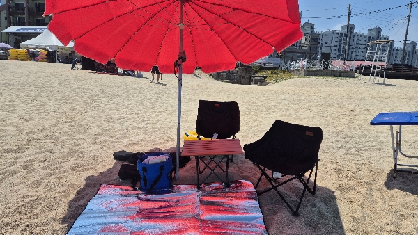 저희는 파라솔과 돗자리 까지 해서 15,000원이라 빌리고 저희 테이블이랑 의자를 펼쳤습니다.