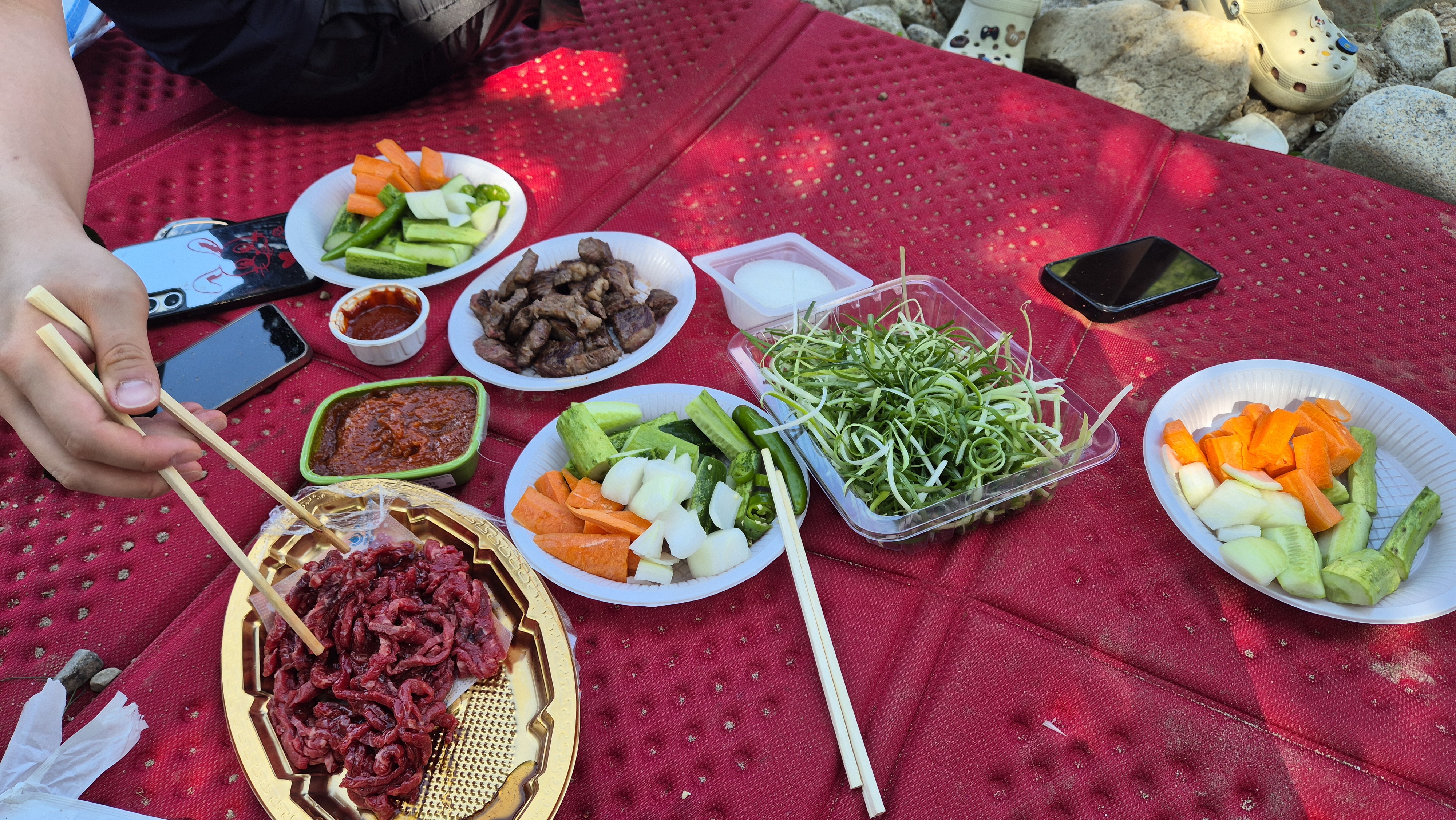 직접 준비해간 바비큐도 좋았지만, 근처 식당에서 먹은 냉면은 정말 일품이었어요. 새콤함과 국물을 먹으니 캠핑의 피로가 싹 풀리더라고요. 역시 저는 냉면파
