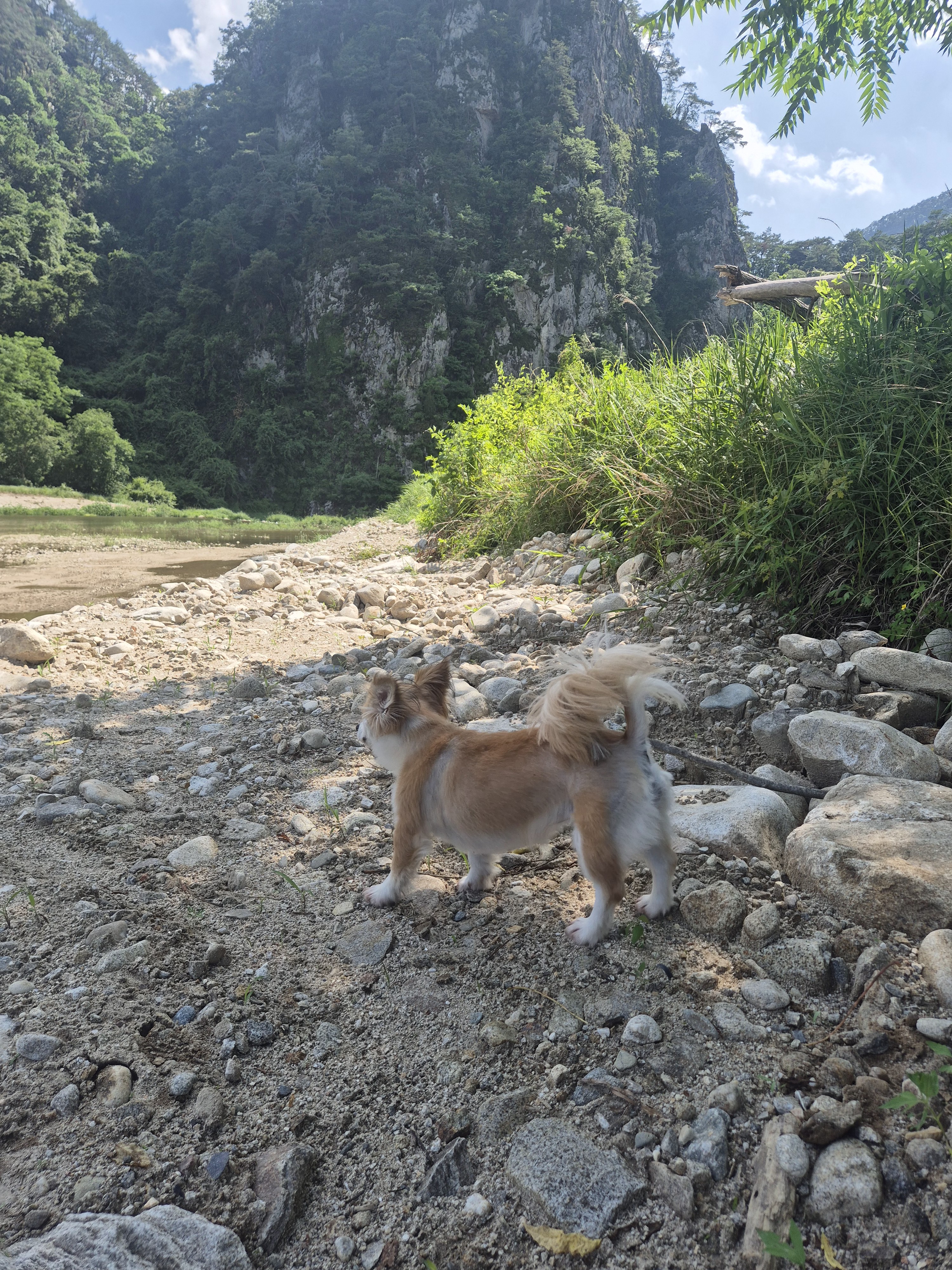원주 칠봉계곡은 아이들 물놀이에 정말 안성맞춤이에요. 수심이 얕고 물살이 잔잔해서 어린 아이들도 안전하게 놀 수 있었죠. 우리 e댕댕이들은 처음에 물이 차갑고 무서운지 안들어가려고 하더니, 금세 적응하고 신나게 첨벙첨벙!