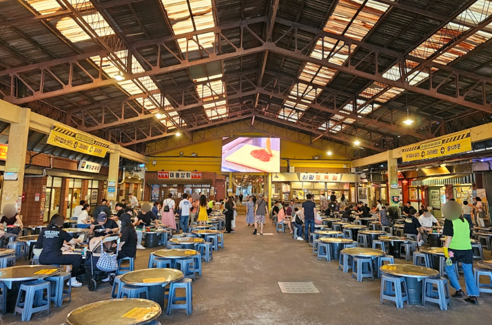 정류장에서 걸어서 500m 정도 걸어 들어오면 예산시장이 나옵니다.