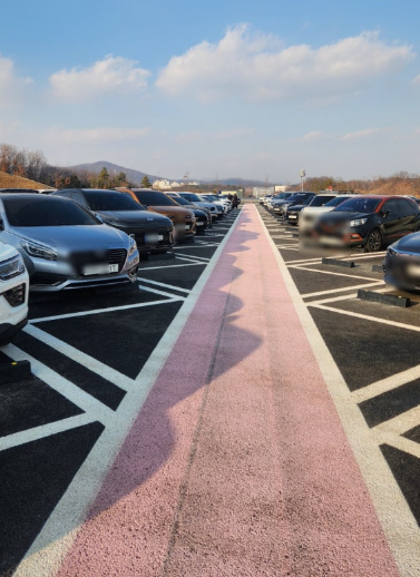 주차장에서 가장 좋았던 점은, 가운데로 인도 보행통로가 안전하게 확보되어 있다는 점입니다.