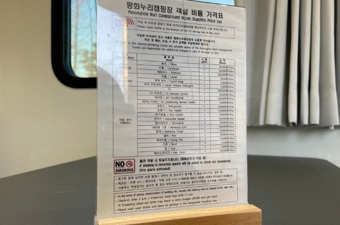 체크인을 하시면, 주의사항과 카라반 비번, 헤어 드라이기가 들어있는 체크인 박스를 전해 받습니다.