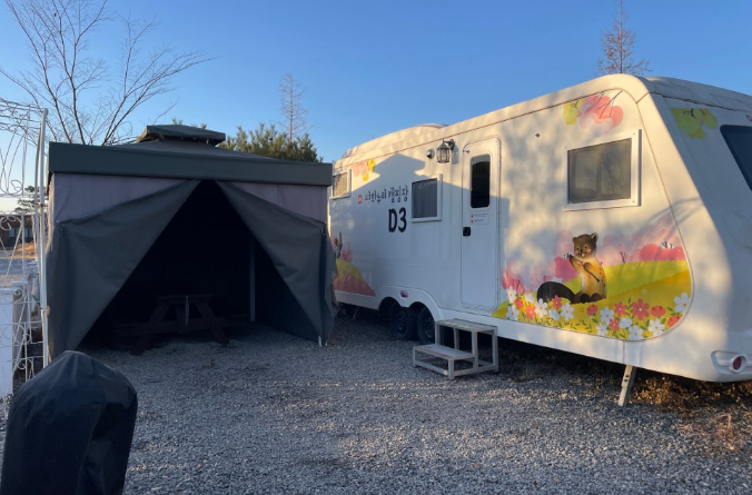 예약한 카라반 앞에 주차 후 짐을 내리고 주차장에 주차를 하면 되십니다.