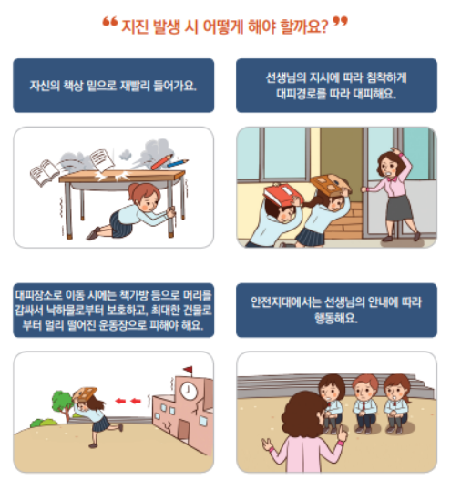 2. 지진 발생 시 행동요령을 익숙해질 때까지 연습하기