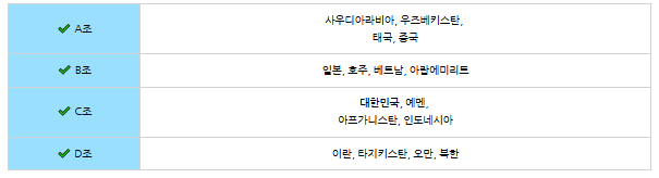 대한민국은 인도네시아, 아프가니스탄, 예멘과 함께 C조에 편성되었는데요. 4월 5일 인도네시아 8일 아프가니스탄,